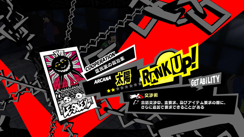 | The protagonist obtained "Diplomacy" ability from the Sun Confidant. Sources: https://megamitensei.fandom.com /wiki/Confidant |